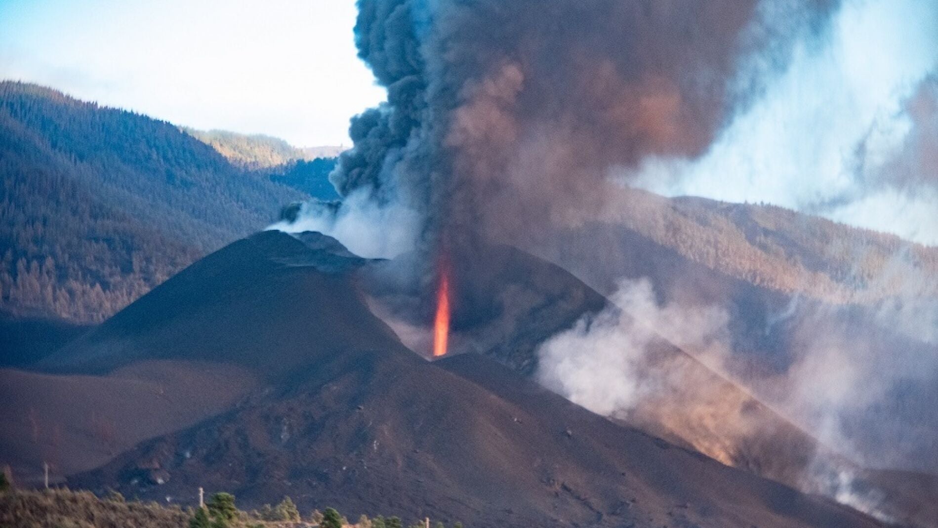 Además, siguen activos varios centros en el cono emisor principal pero no se prevé la aparición de ningún centro emisor que no sea cercano al cono actual. La altura medida hoy de la columna eruptiva es de 4.000 metros.