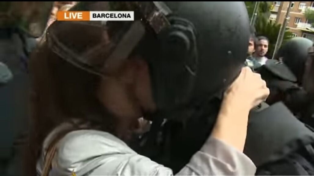 Un agente de la Policía Nacional ha presentado una denuncia por el beso en la boca "repentino y no consentido" que una mujer le propinó durante el dispositivo contra el referéndum independentista del 1 de octubre de 2017, al considerar que puede ser constitutivo de un delito contra la libertad sexual.