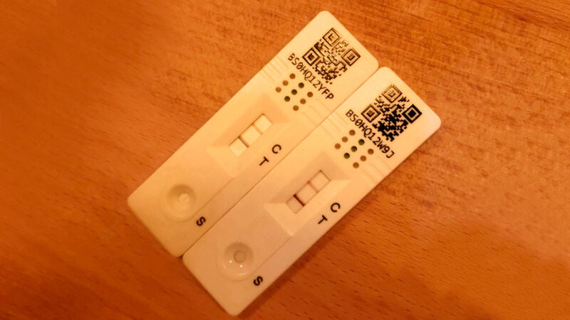 Un resultado negativo en un test de antígenos es fácil de identificar. En este caso, solo aparecerá la línea de control (C) y en la zona de la prueba (T) no aparecerá ninguna línea. Nunca debemos comprobar el resultado después del tiempo indicado en las instrucciones de la prueba (normalmente 15 minutos), ya que éste podría alterarse y darnos un "falso positivo".
