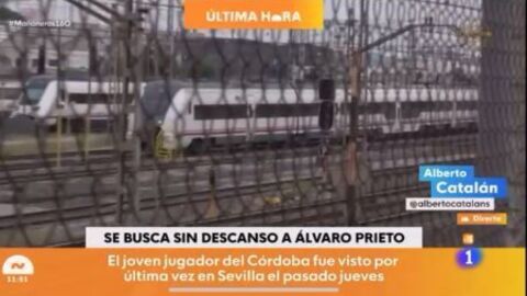 Un cámara de Televisión Española ha grabado un cuerpo entre dos vagones en la zona donde se buscaba al joven cordobés Álvaro Prieto, desaparecido desde el pasado 12 de octubre cuando no logró coger el tren en la estación de Santa Justa con destino a Córdoba capital. Las imágenes se han emitido en Televisión Española.