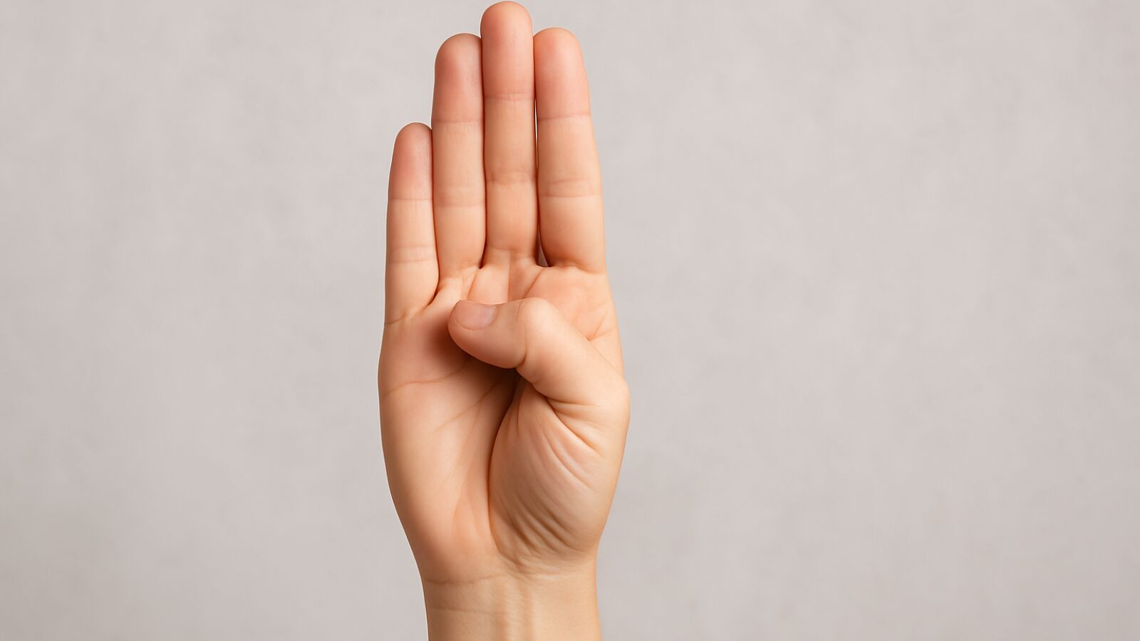 El gesto consiste en levantar la mano con la palma hacia afuera, doblar el pulgar sobre la palma y luego cerrar los otros cuatro dedos formando un puño. Es una señal silenciosa de auxilio reconocida internacionalmente para pedir ayuda en situaciones de violencia machista.