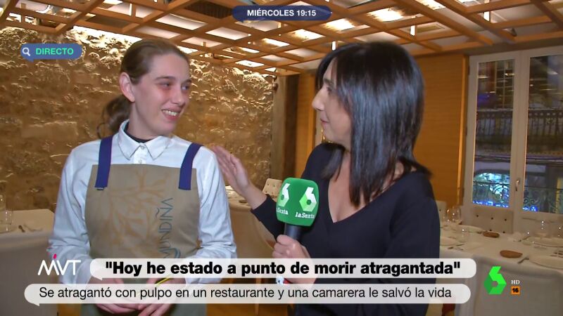 Lo que contamos aquí es real y le ha pasado a la periodista de laSexta Taciana Díaz, quien se atragantó mientras tomaba una tapa de pulpo en el restaurante 'A Mundiña' de A Coruña. "Simplemente la metí en la boca, no debí de masticar todo lo que se debe masticar por las prisas y me atraganté" comenta la periodista mientras asegura que "no podía respirar".