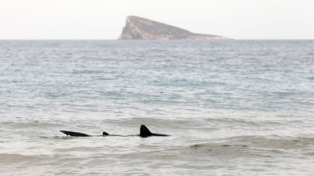 La playa de Benidorm ha tenido la visita este jueves de un 'turista' desorientado en sus aguas. Un tiburón tintoreta de dos metros ha aparecido en la playa sorprendiendo a los bañistas que disfrutaban del sol y el mar en la costa alicantina.