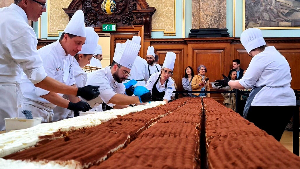 Un tiramisú de 440,58 metros de longitud fue reconocido este domingo con un récord Guinness al dulce de esta variedad más largo del mundo. El pastel fue elaborado por más de 100 pasteleros y voluntarios bajo las órdenes de Mirko Ricci en el icónico barrio londinense de Chelsea.