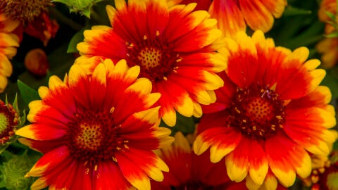 Es un híbrido entre girasoles y margaritas. Una planta de exterior muy vistosa por su colorido y perfecta para principiantes. Florecen durante toda la temporada, cubriendo el suelo con flores rojas y amarillas. Esta flor silvestre tiene una tolerancia excepcional al calor y la sequía.