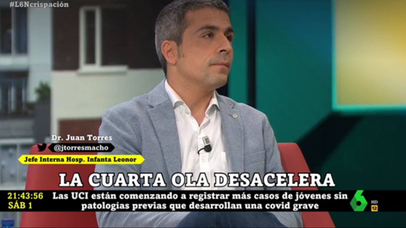 El jefe de Servicio de Medicina Interna del Hospital Infanta Leonor, Juan Torres, ha explicado en el programa 'laSexta Noche' de la situación actual de los hospitales. El médico ha confirmado que las nuevas variantes "duplican el riesgo de ir a UCI" y algunas como la sudafricana lo "triplican".