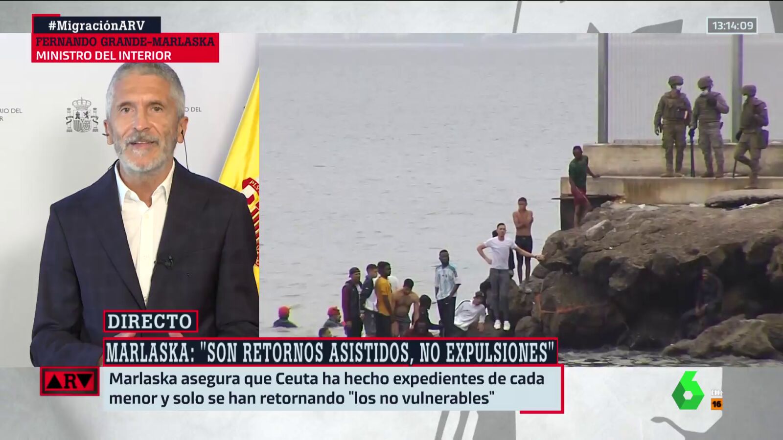 El ministro del Interior, Fernando Grande-Marlaska, analiza durante una entrevista en Al Rojo Vivo de La Sexta las críticas que ha recibido tras las devoluciones de los menores de Ceuta a Marruecos. Además, también ha explicado el plan de evacuación de Afganistán.