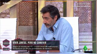 Juan del Val cree que "algo estamos haciendo mal" cuando siete de cada diez parejas acaban separadas. Sobre el estudio que asegura que los divorcios aumentan un 15% si hay una convivencia previa entre los contrayentes, el colaborador lo considera "una tontería".