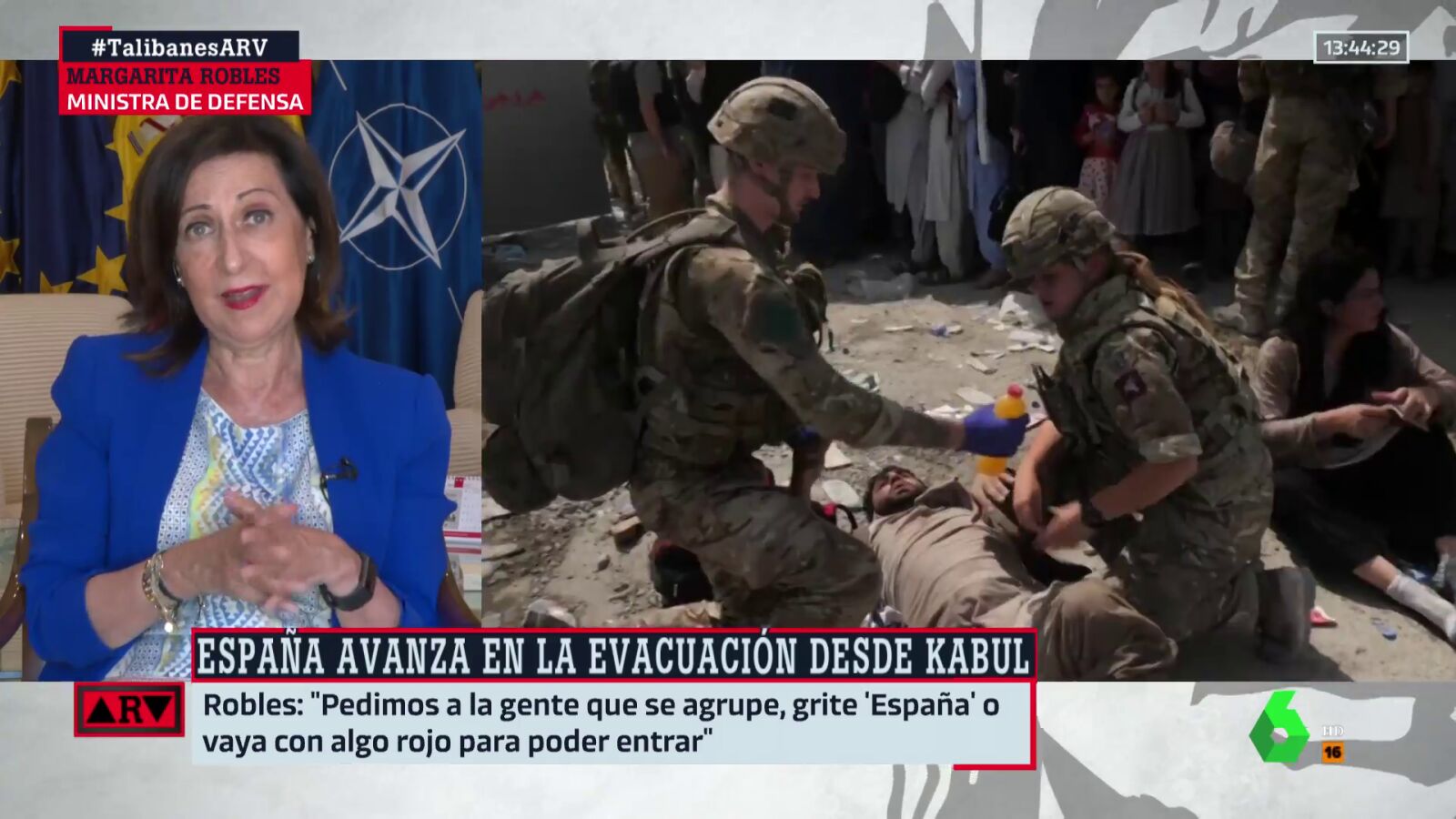 La ministra de Defensa, Margarita Robles, analiza en 'Al Rojo Vivo' la situación que se está viviendo en Afganistán, en concreto, en el aeropuerto de Kabul, donde miles de personas tratan de escapar del país tras la llegada al poder de los talibanes.