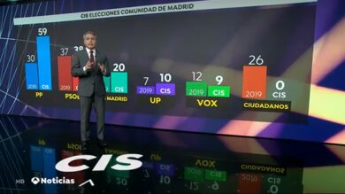 Vox bajaría de 12 a 9 escaños, con el riesgo de quedar fuera del Parlamento madrileño si no alcanza el 5% del voto. Según el CIS, está muy al límite. Por último, el barómetro del CIS indica que Ciudadanos se quedaría fuera. De 26 a 0 escaños.