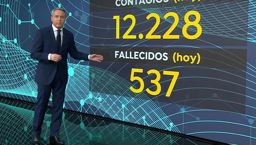 Al tiempo que suben las muertes, baja el número de nuevos contagios, una circunstancia aparentemente contradictoria pero que tiene una explicación: "La explicación de este alto número de muertes, al tiempo que bajan los contagios, es que los fallecimientos de ahora se producen por contagios de hace varios días, cuando el número de casos era mayor", ha comentado Vicente Vallés.
