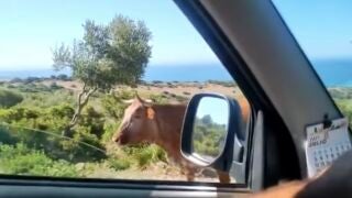 Dos jóvenes que conducían para la playa de Bolonia pararon a la orilla de la carretera junto a una vaca para preguntar el camino. "Buenas tardes, perdona, ¿para Bolonia?", pregunta el conductor. Los chicos rompieron a carcajadas ante la reacción del animal, con un movimiento de cabeza parece indicarles que van por buen camino, ya que señala perfectamente hacia donde se dirigen. El gesto de la vaca nos sugiere que entendió completamente lo que los jóvenes necesitaban saber.