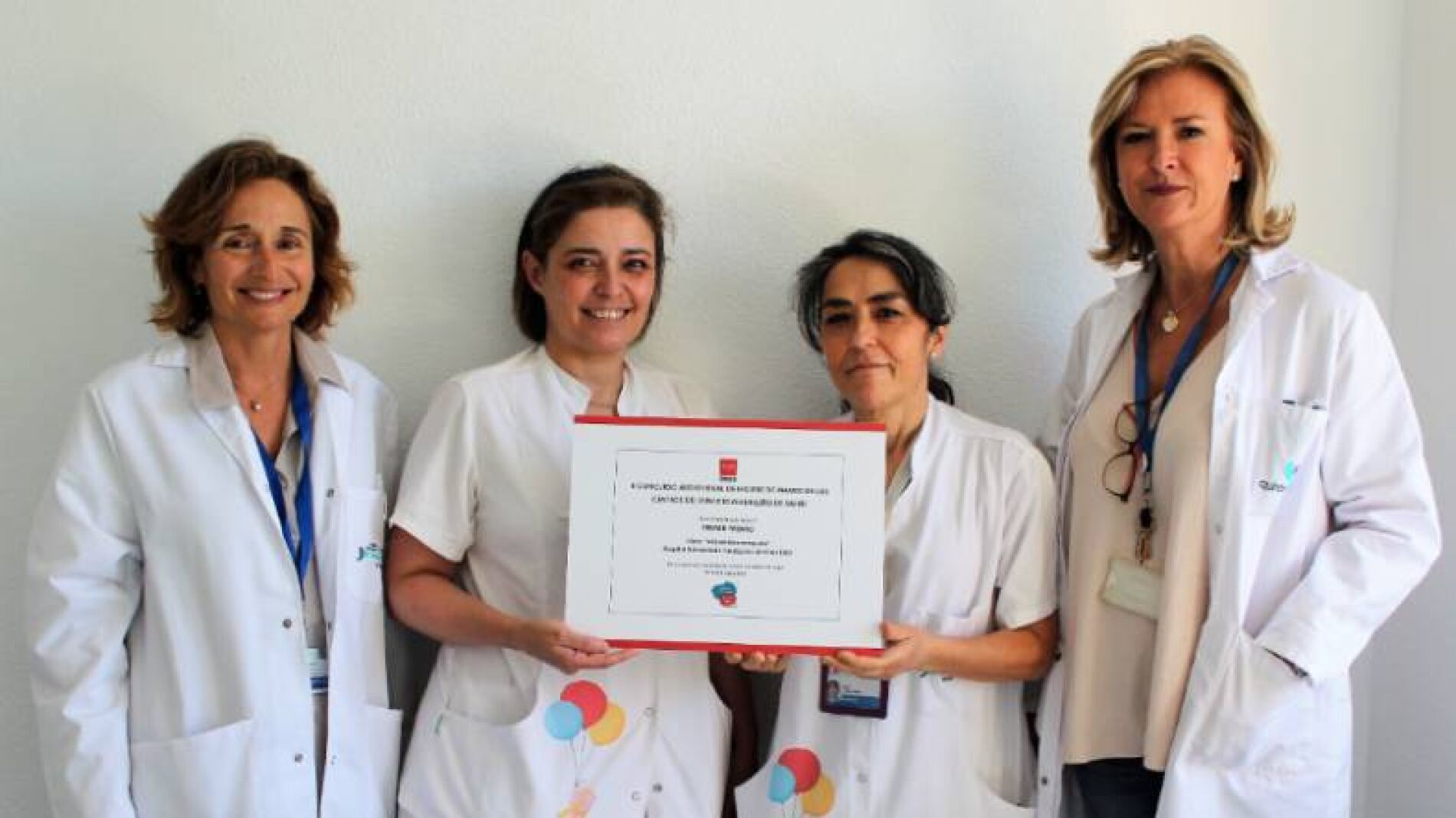 Se adjunta el certificado de ganador, fotos de la entrega de los premios por el subdirector de Calidad del SERMAS y otra de las creadoras con la Subdirección Médica y la Dirección de Enfermería de la FJD.