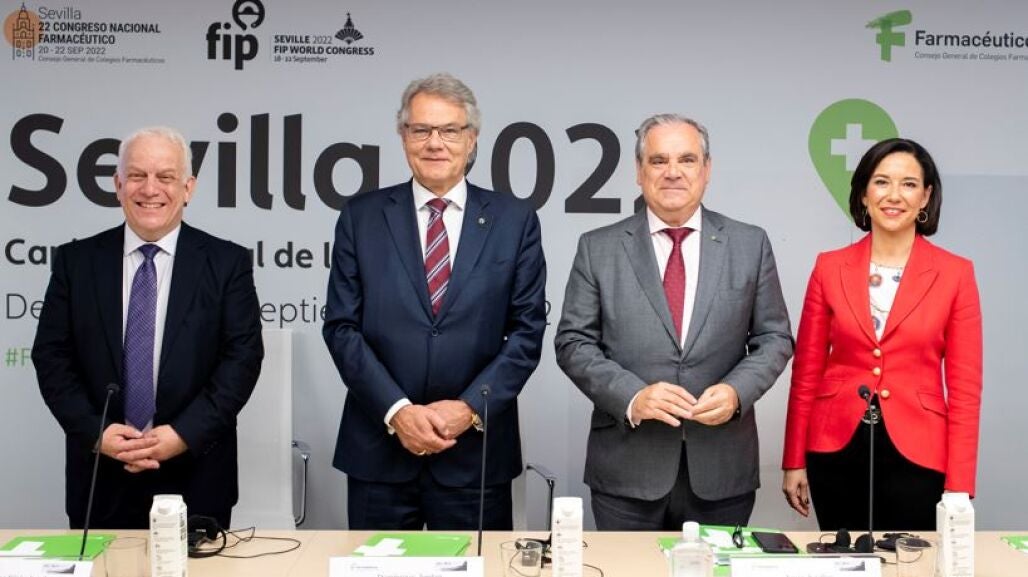 Los presidentes del Consejo General de Farmacéuticos, Jesús Aguilar; y de la Federación Internacional Farmacéutica (FIP), Dominique Jordan; han presentado en Madrid, en una rueda de prensa retransmitida para todo el mundo, el 22 Congreso Nacional Farmacéutico y el 80 Congreso Mundial de Farmacia, que se celebrarán conjuntamente del 18 al 22 de septiembre de 2022 en Sevilla.