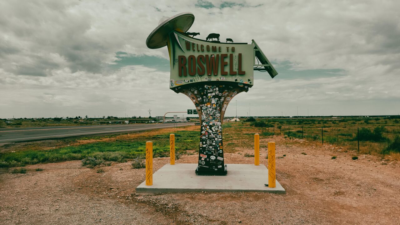 Roswell es una ciudad de unos 50.000 habitantes que vive por entero del turismo ovni. Especialmente esta semana, cuando se celebra el festival OVNI, que se viene celebrando la primera semana de julio desde 1995. Este año, hay también, como los anteriores, concurso de disfraces de extraterrestres, conferencias de ufólogos, reposición de películas que tratan de invasiones de extraterrestres, música, convenciones y propuestas de experiencias OVNI. Por unos 10 dólares se puede comprar una bolsa de piedras del rancho donde se encontraron los escombros de metal y por algo más de 50 se puede dormir al raso en el mismo lugar donde muchos creen que aterrizaron los alienígenas. Un día, hoy, una semana especial en una ciudad totalmente volcada con el turismo OVNI. Las farolas de Roswell tienen la forma de la cabeza de los supuestos extraterrestres locales, el Mac Donald´s local, tiene la forma de un platillo volante, hay tiendas por todas partes que venden juguetes, libros, muñecos, toda la parafernalia imaginable del fenómeno OVNI y además están el centro de investigación internacional OVNI y el Museo OVNI, la joya de Roswell, en el centro de la ciudad.