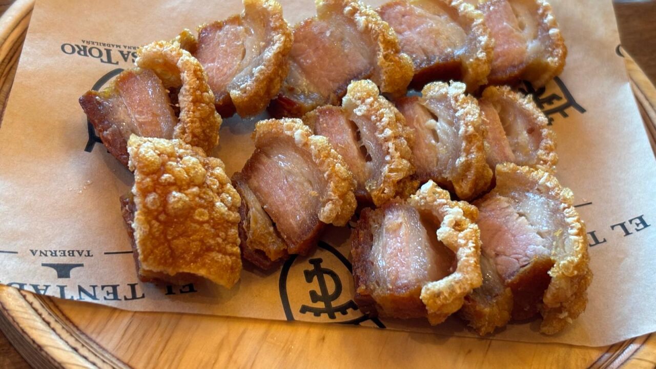 El recorrido comenzó en el barrio de Las Ventas, en Casa Toro, una taberna de espíritu castizo que reivindica la cocina tradicional madrileña. Bajo la dirección de César Molero, el establecimiento apuesta por recetas reconocibles y sabores de siempre. En la mesa no faltaron la ensaladilla rusa con gambas al ajillo, las gildas, los callos a la madrileña y como grandes protagonistas, los torreznos crujientes acompañados de patatas machaconas. Una parada que confirma el peso de la tradición en la gastronomía de Madrid.