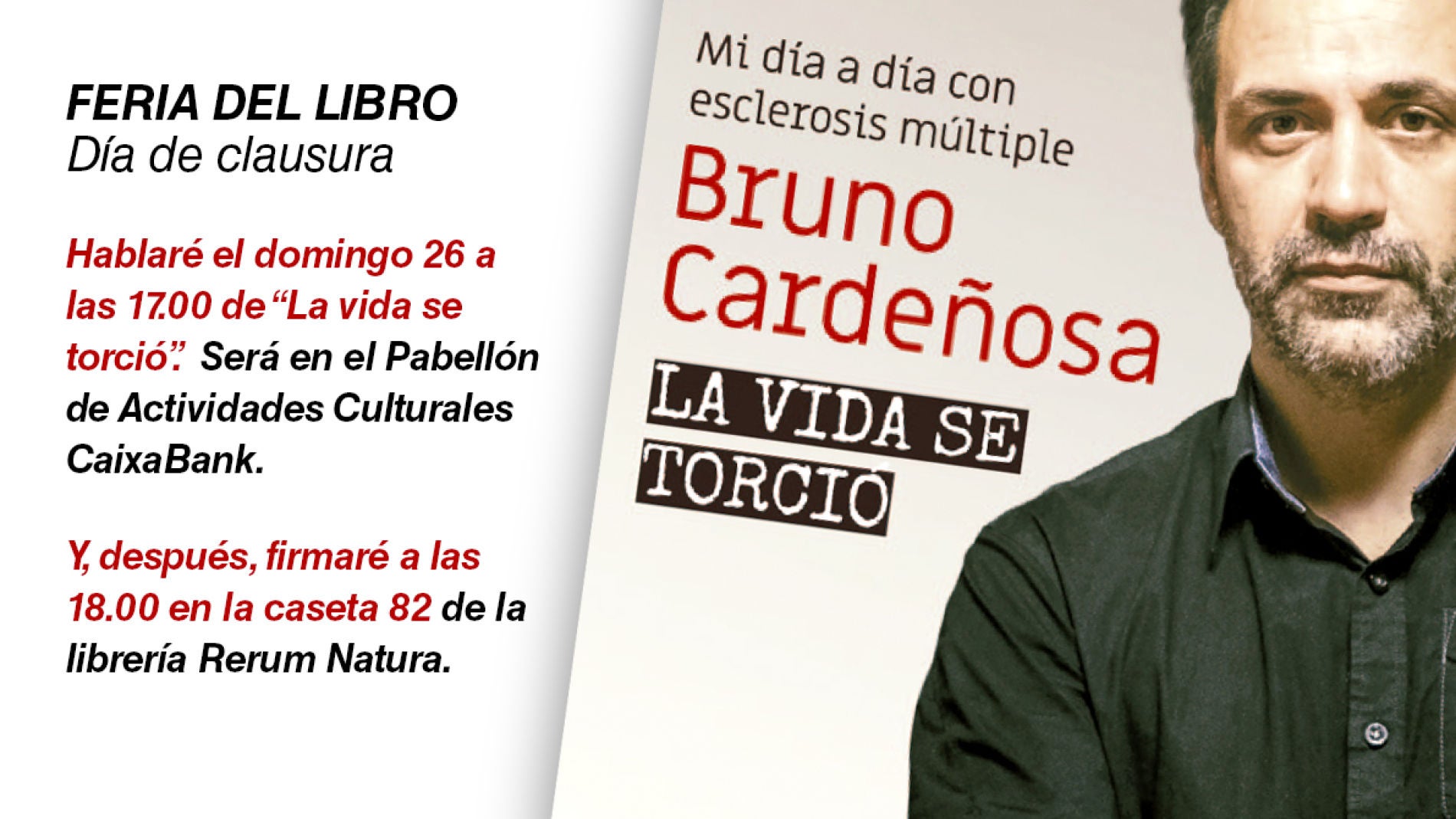 Bruno Cardeñosa estará a las 17.00 en el Pabellón de Actividades Culturales 'Caixa Bank' y a las 18.00 horas en la caseta 82 firmando ejemplares de su obra.