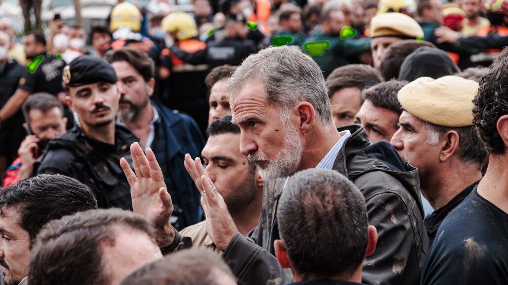 Felipe VI y Letizia visitaron junto a Pedro Sánchez y Carlos Mazón el centro de Paiporta, localidad considerada como zona cero de la DANA, y la comitiva fue recibida con gritos, insultos y lanzamiento de objetos y barro durante su recorrido.