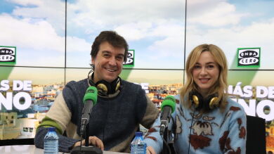 Marta Hazas y Javier Veiga han visitado este jueves Más de uno, donde han conversado con Carlos Alsina junto al elenco habitual de cómicos del programa, formado por Goyo Jiménez, Agustín Jiménez, Paula Púa y Borja F. Sedano.
