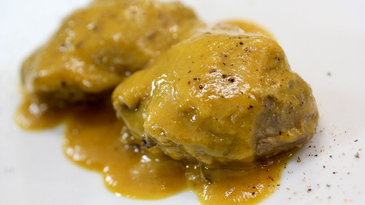 Escurrir las carrilleras con cuidado, triturar la salsa, pasarla por un colador y volver a meter las carrilleras, dándoles un meneo al fuego y añadiendo la mantequilla para que la salsa brille.