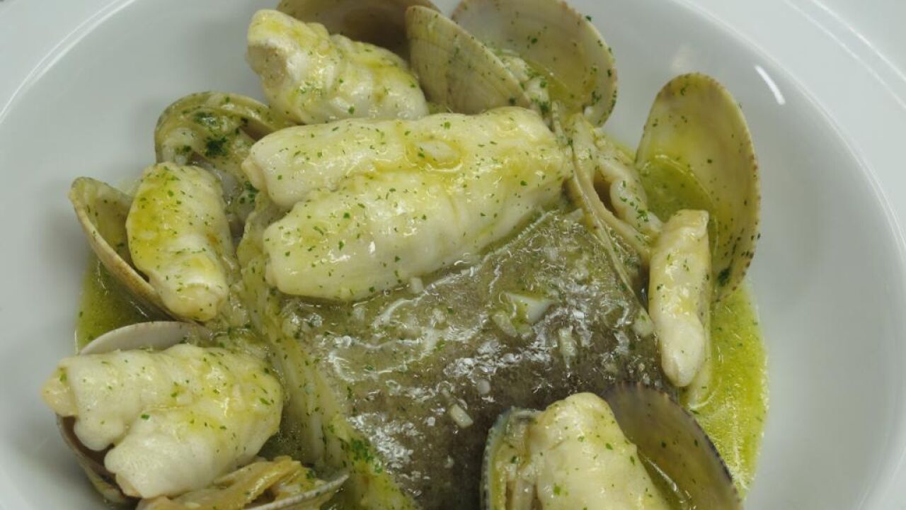En una cazuela aparte, abrimos las almejas con dos cucharadas soperas restantes de aceite, dos ajos picados y vino blanco. Conforme se abren, las rescatamos dejando que el jugo reduzca y quede concentrado y salado…