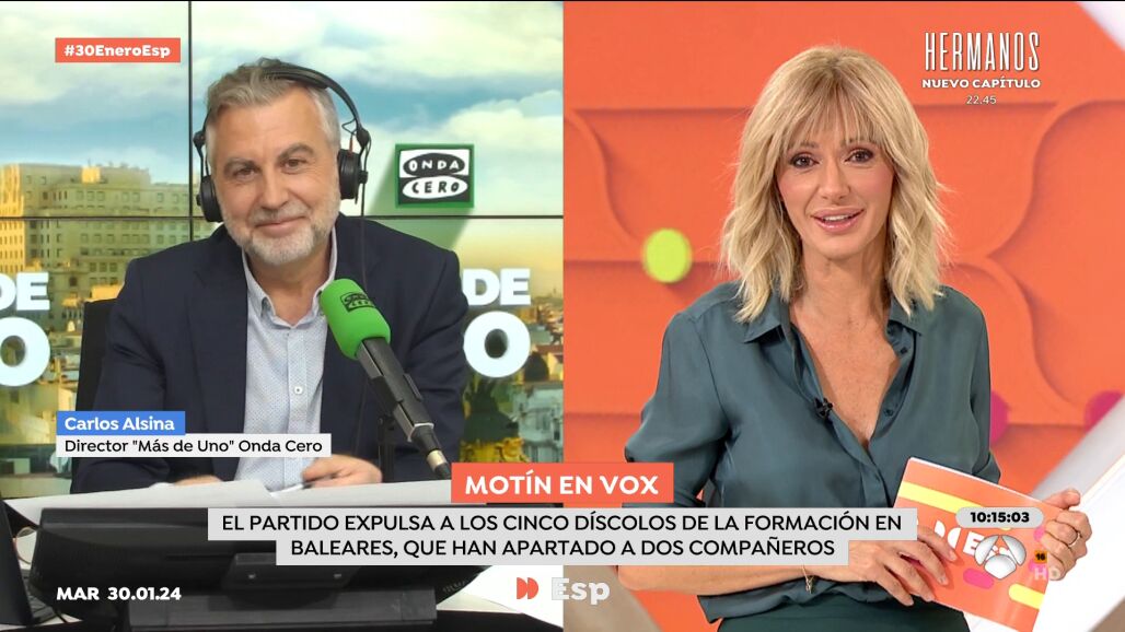 Al respecto de la crisis interna de Vox en Baleares, Alsina vaticina que al partido de Abascal le puede ocurrir como a "otros partidos políticos en los que empezaron a surgir episodios similares en otros territorios" y, al final, acabaron desmoronándose.
