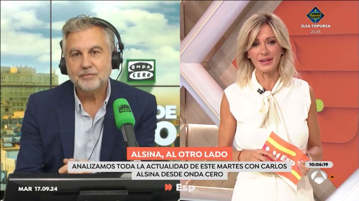 En su cita semanal con 'Espejo Público', Susanna Griso se muestra preocupada por que Sánchez tenga que salvar a la democracia, "porque eso significa que está degenerando y él lleva seis años en el gobierno y diez al frente del PSOE, algo tendrá que ver". Al hilo de esto, Alsina critica que para el presidente del Gobierno, la desinformación y los bulos siempre vienen de la derecha.