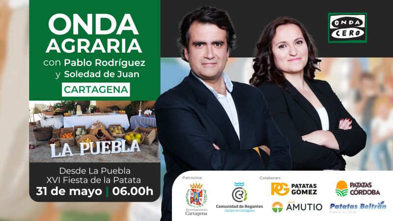 Este sábado desde las 6.00h, ‘Onda Agraria’ se emite desde la localidad de La Puebla, en el término municipal de Cartagena, con motivo de la celebración de la XVI Fiesta de la Patata, un evento que combina tradición, gastronomía y orgullo rural.