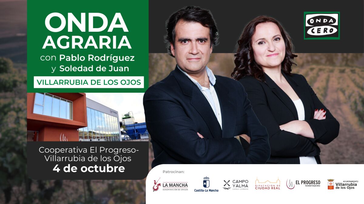 Onda Agraria, el programa referente para los profesionales y amantes del campo que cada fin de semana conducen Pablo Rodríguez Pineda y Soledad de Juan, dedicó una edición especial a la vendimia 2025 en Castilla-La Mancha. El espacio se grabó el viernes 3 de octubre desde las instalaciones de la Cooperativa El Progreso en Villarrubia de los Ojos (Ciudad Real), en el marco de la VII Edición de la Fiesta de la Vendimia. La iniciativa estuvo impulsada por el Consejo Regulador de la Denominación de Origen La Mancha y Atresmedia Radio, con el patrocinio de la Junta de Comunidades de Castilla-La Mancha, la Diputación de Ciudad Real y el Ayuntamiento de Villarrubia de los Ojos.