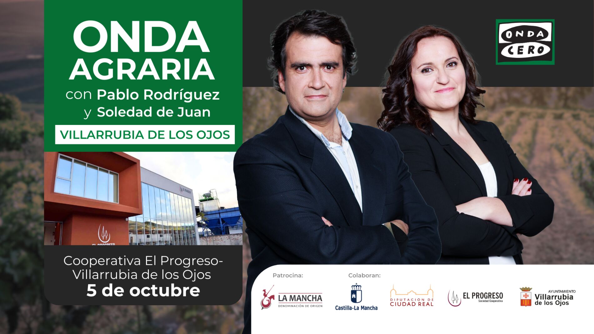 Este sábado Onda Agraria ha emitido un programa especial desde Villarrubia de los Ojos, en el que Pablo Rodríguez y Soledad de Juan se han desplazado hasta la Cooperativa 'El Progreso' para celebrar una nueva edición de las Fiestas de la Vendimia.