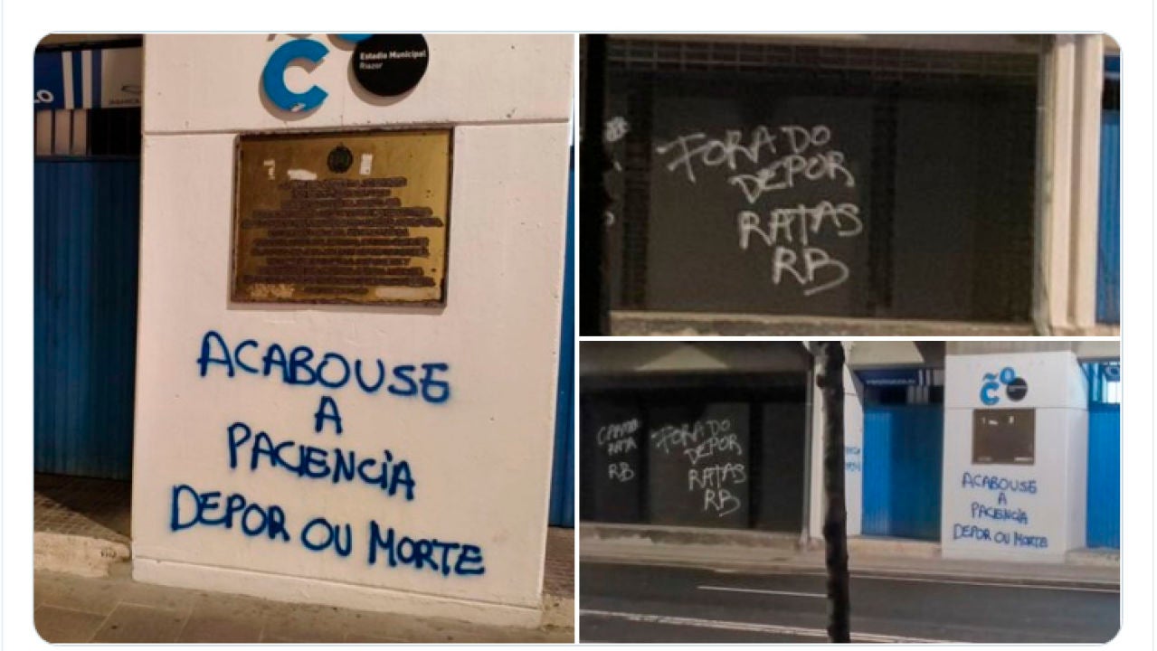 La crisis en el conjunto blanquiazul parece ser la causa de que este sábado hayan aparecido varias pintadas en las paredes de Riazor. "Acabouse a paciencia, Dépor ou morte" o "directiva dimisión", son algunas de las frases que se pueden leer en el estadio.